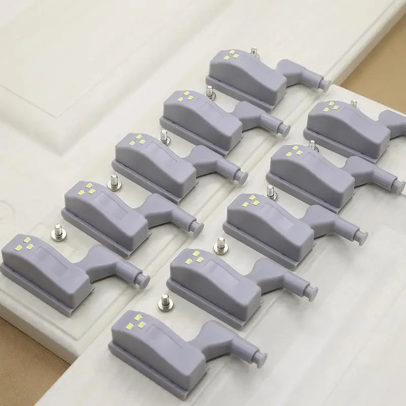 BRIGHTEN EVERY DARK CORNER INSTANTLY WITH HANDS-FREE, AUTOMATIC ILLUMINATION THE MOMENT YOU OPEN A DOOR. 10 PACK LED CABINET HINGE LIGHTS.